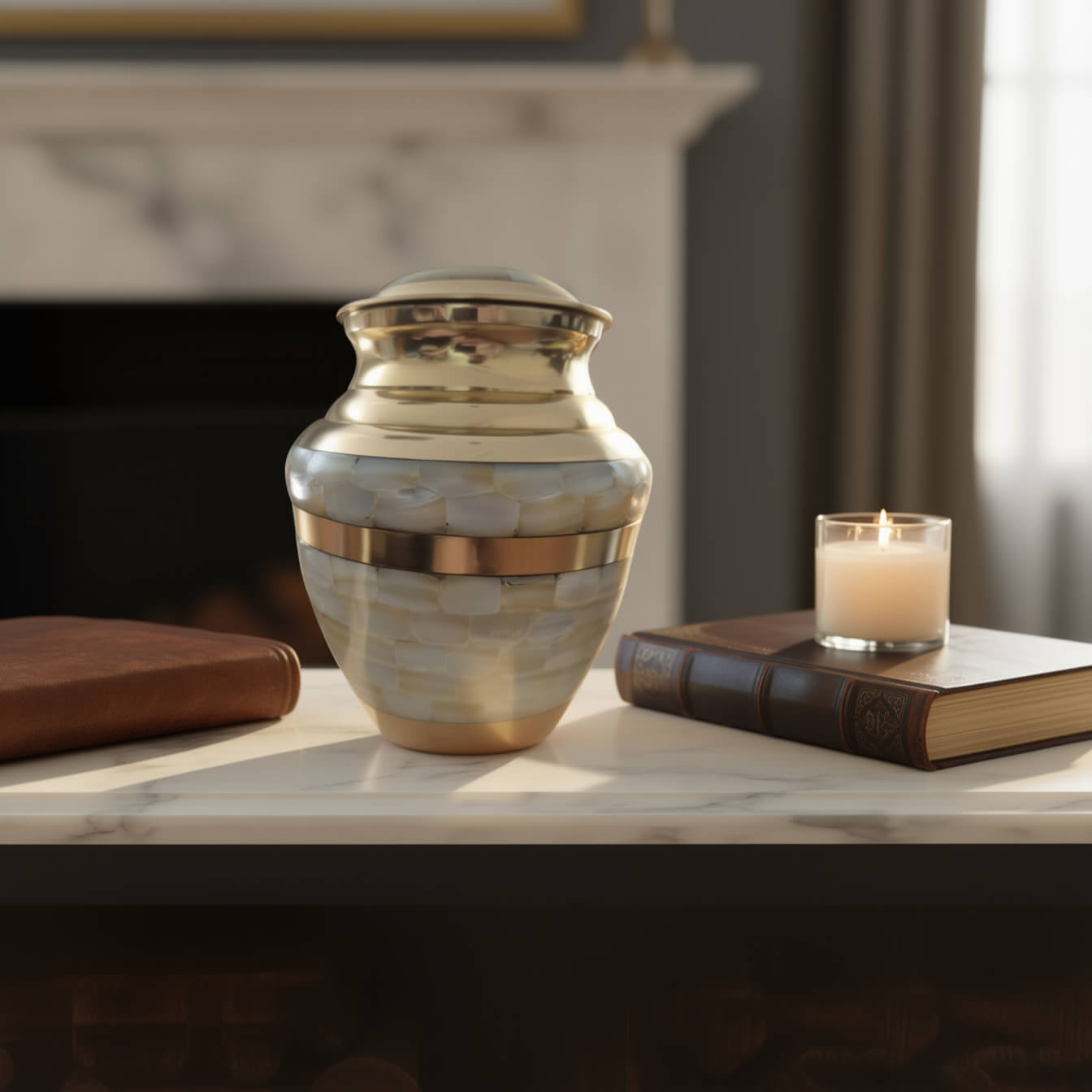The Ocean Pearl Brass Child Urn is a serene and heartfelt tribute designed to honour the memory of a beloved child. Crafted from solid brass and finished in a pearlescent white and oceanic shimmer, this urn embodies purity, peace, and eternal love.
