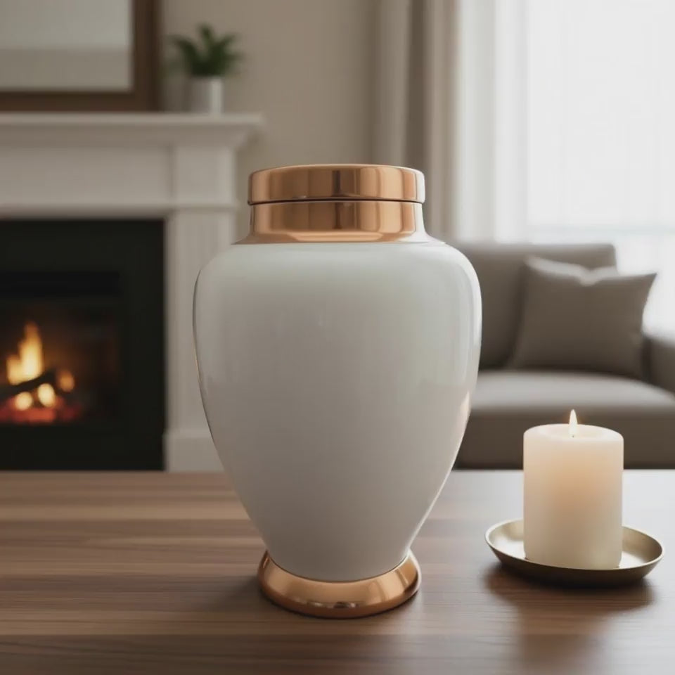 White speaks of peace. Rose gold speaks of warmth. Together they create something that feels less like a memorial and more like a quiet embrace. This urn was made for someone who brought softness and love to every room they entered.